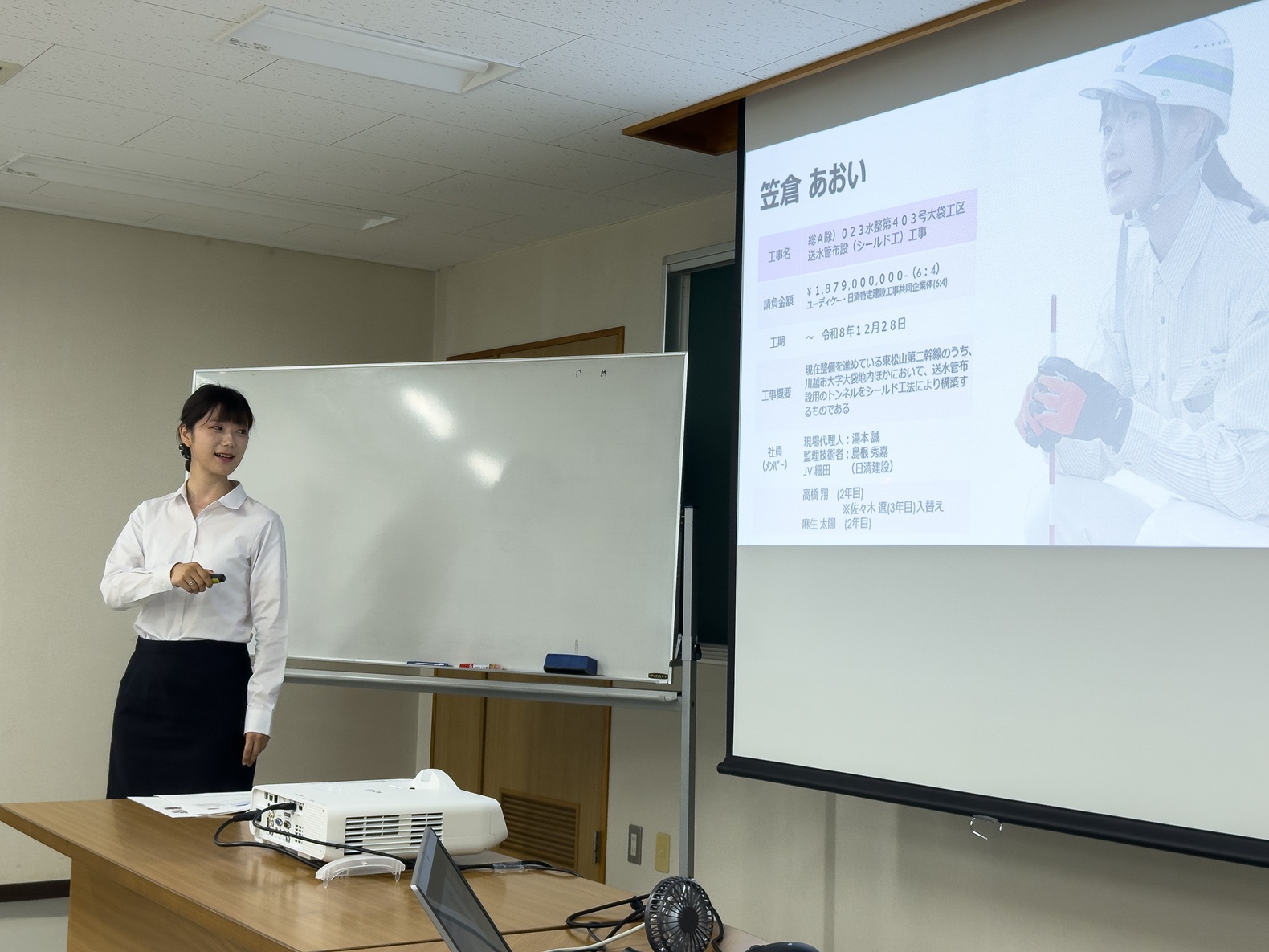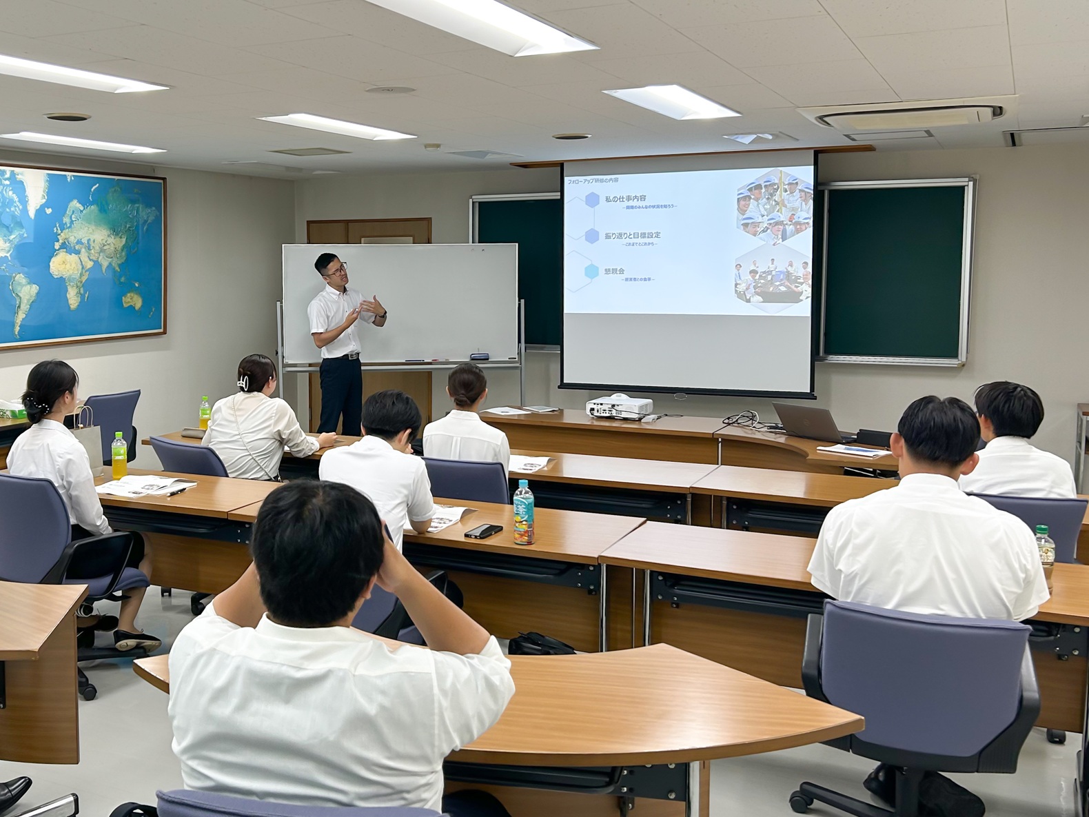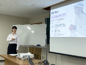 研修では各自スライドを使用し自分の現場や職場を紹介しています。同期の発表を聞くことで仕事に対するモチベーションの部分でも刺激にもなり、早期から人前で発表する機会を設けるのもこの研修では大切にしております。
